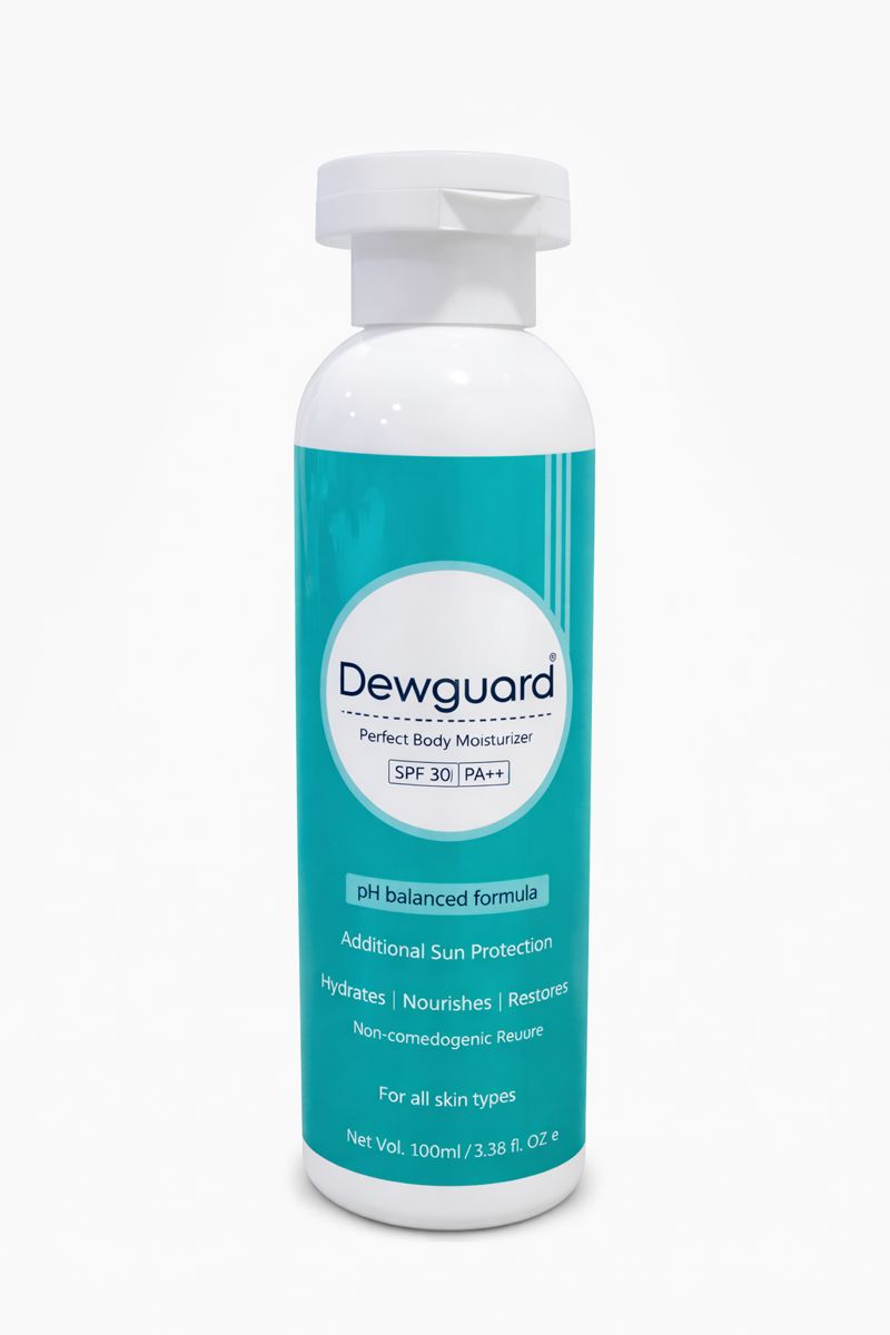 • DewGuard Perfect Body Moisturizer SPF 30 PA+++ is a lightweight, non-greasy body moisturizer specially formulated for acne-prone and sensitive skin.